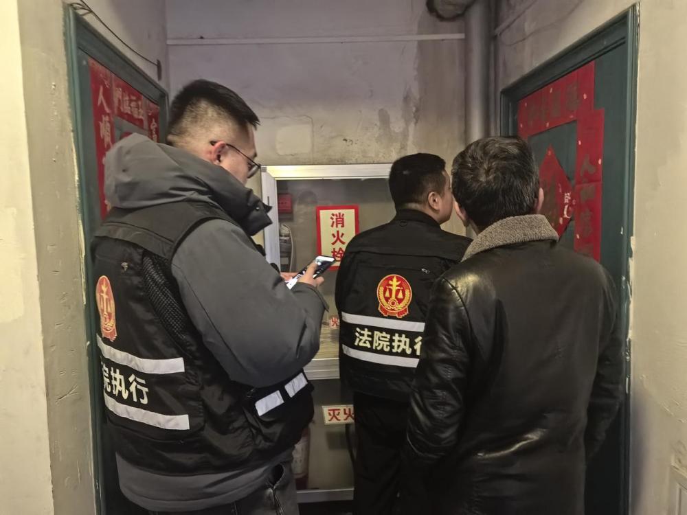 “請開門。我是城關區(qū)人民法院執(zhí)行局工作人員。”又敲了幾分鐘門后,屋內(nèi)依舊沒有任何反應。最終大家只得暫時放棄,拍照取證后離開。