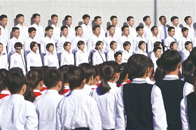 “白山黑水齊出動(dòng),復(fù)興我中華……”殘歷碑廣場(chǎng)上,80名青年學(xué)生鏗鏘有力的朗誦聲,讓《送戰(zhàn)友編歌壯行保國(guó)家》《黑水白山•調(diào)寄滿江紅》《濱江抒懷》三首分別由東北抗聯(lián)英雄楊靖宇、趙尚志、趙一曼當(dāng)年寫下的詩(shī)詞響徹在沈陽(yáng)“九•一八”歷史博物館上空。