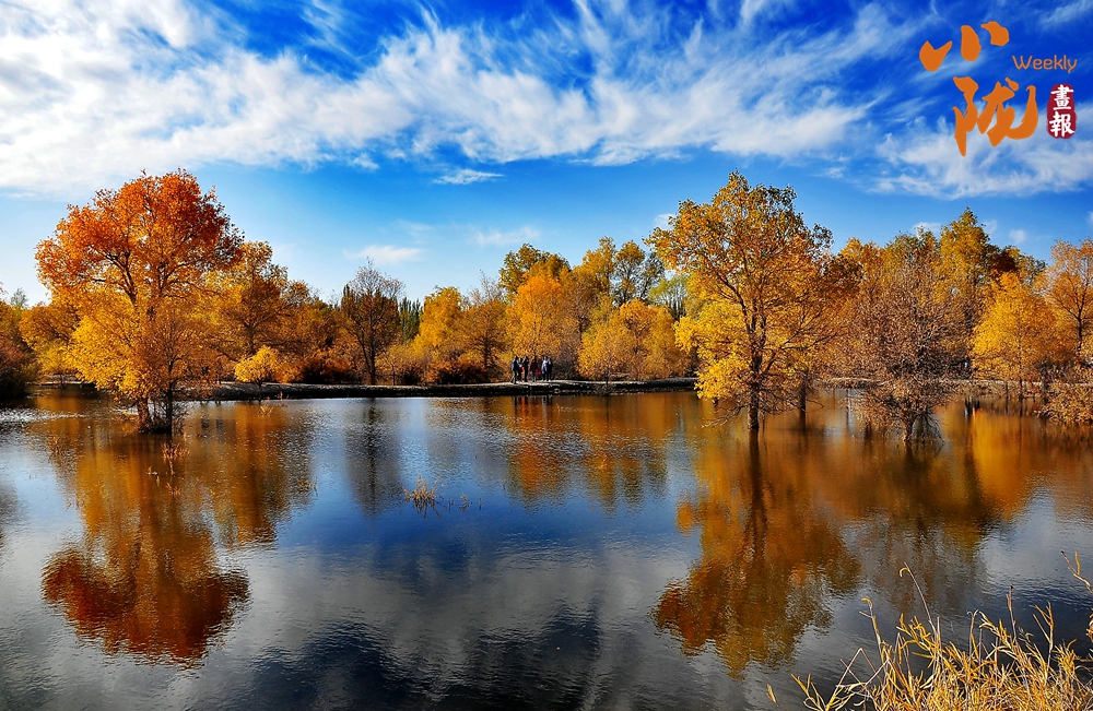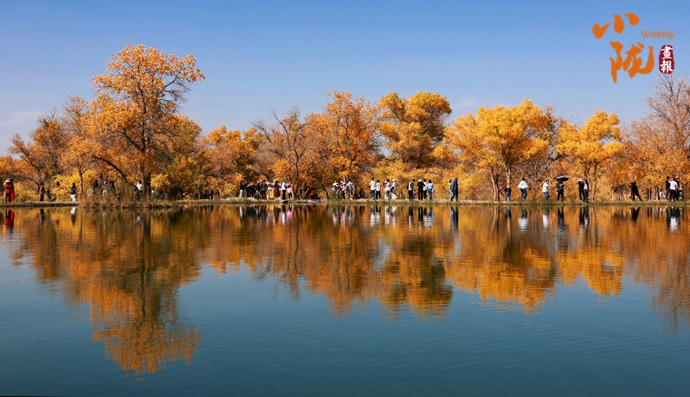 空曠的藍天,寧靜的湖水,絢爛的胡楊,成為秋天最迷人的風景。每到秋季,不少游客慕名而來,打卡拍照,近距離感受千年胡楊的壯美。