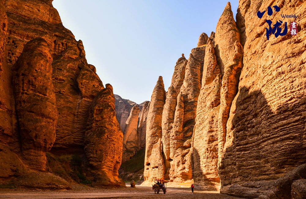 河邊一彎平疇沃土,農(nóng)舍錯落炊煙裊裊,良田美池環(huán)繞,棗樹桑竹相擁,靜謐而又秀美。放眼望去,無數(shù)高聳的石柱和石峰拔地而起,它們或孤峰獨立,直插云霄,仿佛在與蒼穹對話;或群峰簇?fù)?,宛如千軍萬馬,正蓄勢待發(fā),準(zhǔn)備奔赴戰(zhàn)場。