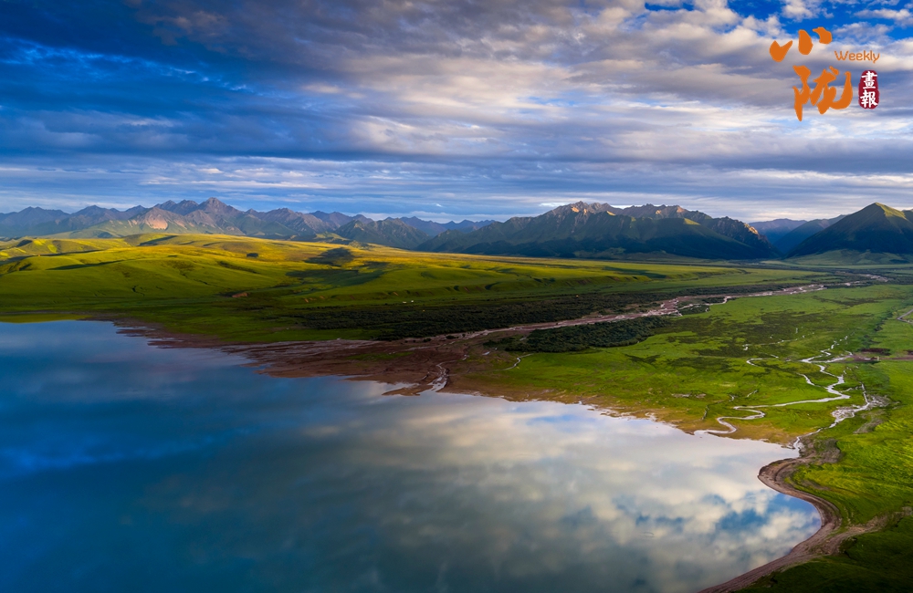 站在祁連山主峰冷龍嶺北坡瞭望,廣袤無垠的草原一片金黃,遠(yuǎn)方是連綿的祁連山,眼前是鸞鳥湖,遠(yuǎn)山近水,充滿了秋色的誘惑。