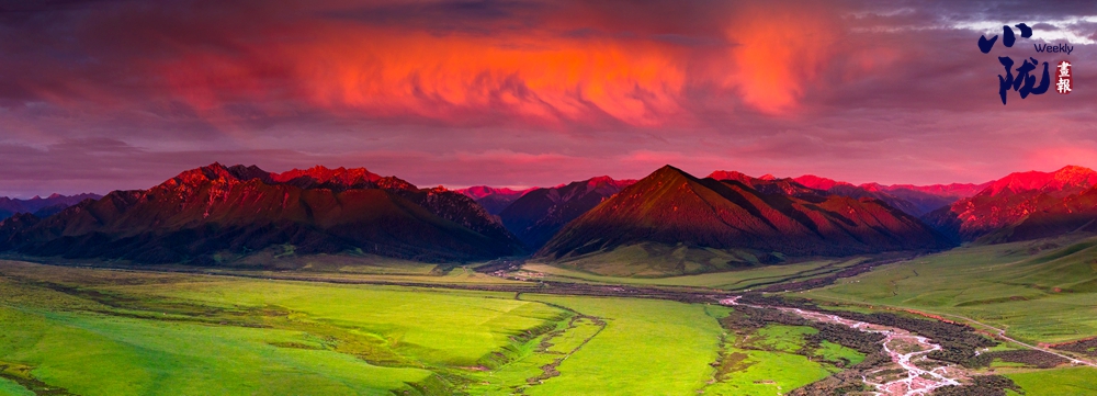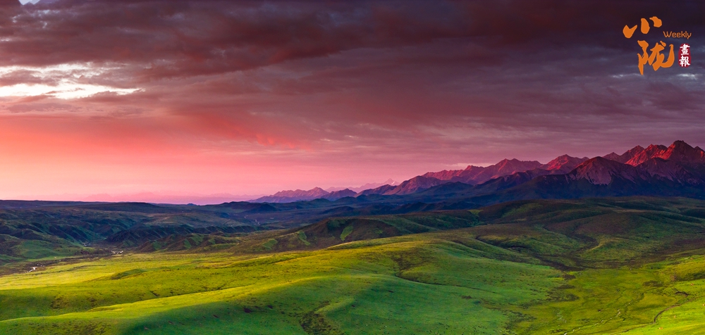 夕陽西下的時(shí)候,晚霞將西邊的天空映得通紅,云朵如火焰般燃燒。而此時(shí),五彩的山巒與綠色的草原相互映襯,形成鮮明對比,十分壯觀和漂亮。