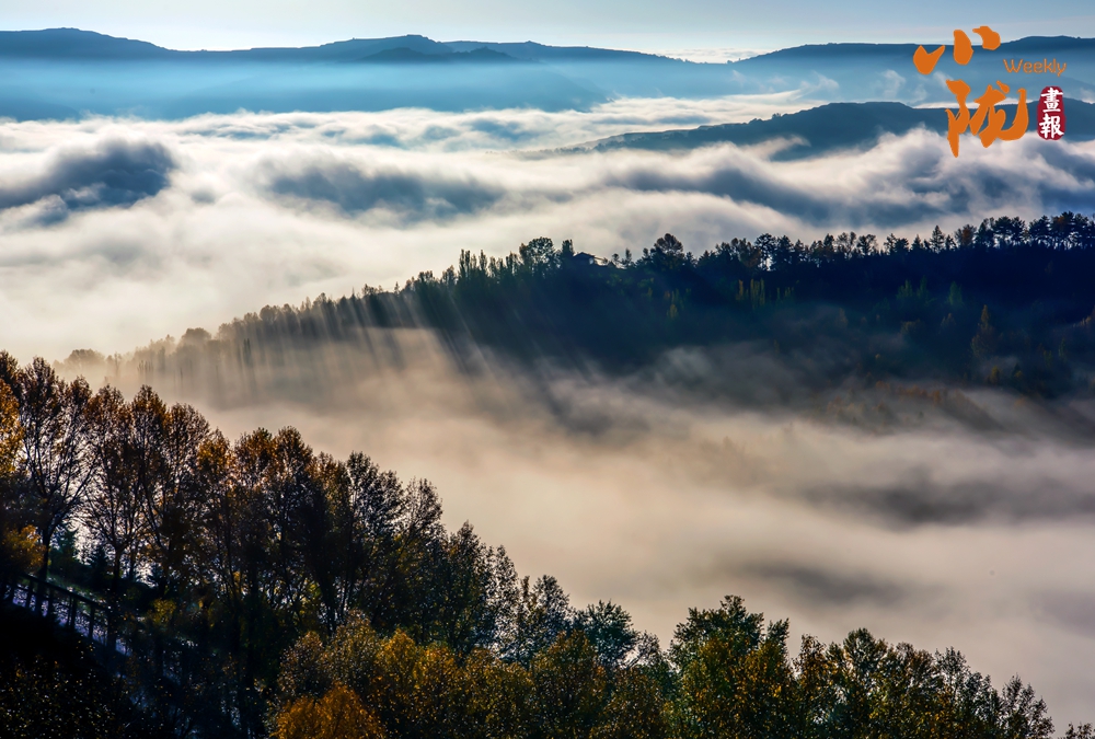 隨著秋意日漸濃厚,大北山層林盡染。霧氣在山間穿梭,如棉絮般輕柔,似輕紗般飄逸,時而翻滾涌動,時而靜靜飄浮,一幅濃墨重彩的山水畫卷緩緩鋪展開來……