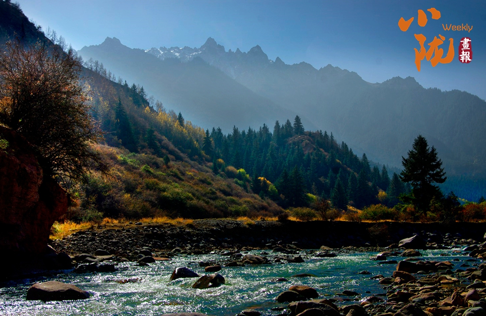 河水如鏡,溪流潺潺,天空澄碧,遠山在云霧中若影若現,與那些染上金黃、橙紅的樹木相互映襯,共同繪制成一幅光影交織、動靜相宜的秋日圖景。
