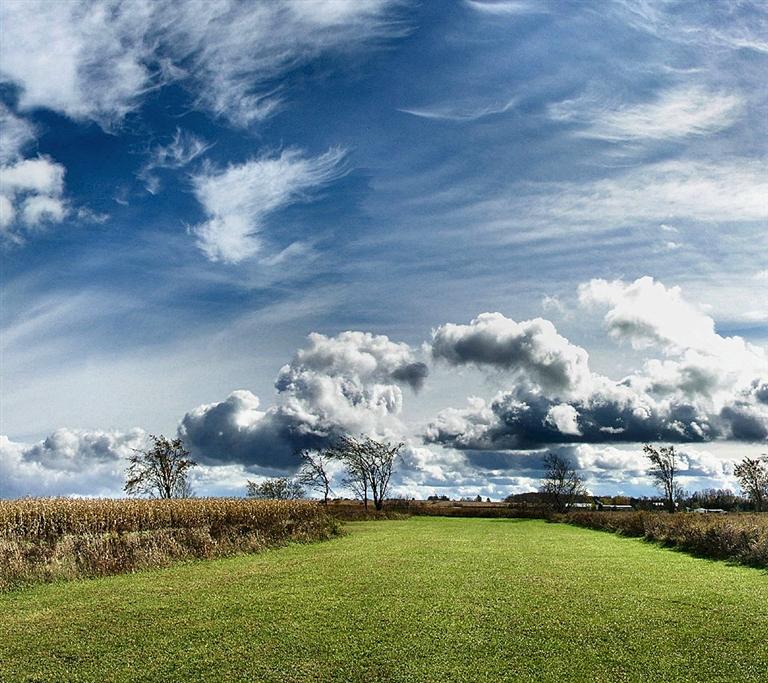 天上的云朵活起來了,不再如冬云般地板著張死人臉,而是出脫成了漫天奔走的,踩著輕盈舞步的少年。雨停了,風勁吹。不再行雨的云,急匆匆馭風而行,好像是一隊隊聽到集結(jié)號的兵士。熙熙攘攘,挨挨擠擠,層疊著,堆擁著,在透明清冽的風中,被棉絮樣撕扯著,疾走,飛逝。過去老人們常說:“云走東一場空,云走西雨汲汲,云走南下不完,云走北下到黑”。而這會兒,我站在空曠而沉郁的田野,仰視著青灰色的云浪迅疾地向北奔跑,卻不灑落一滴雨點,我不得不懷疑這傳承久遠的農(nóng)諺的準確性。但無論怎樣,看著頭頂青溟溟的原野上,鋪天蓋地萬云奔騰的壯闊景象,那種心境豁然洞開的跳脫曠達,絕非我們在春風里放飛一片紙鳶所能比擬的。云們活了,它們在集結(jié),它們在醞釀著一場更大的未知的行動。