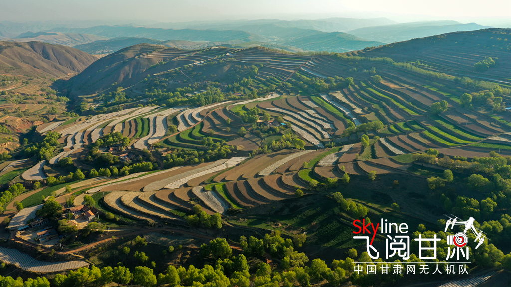 初夏時(shí)節(jié),一場(chǎng)雨后的定西市安定區(qū)石泉鄉(xiāng)3000畝標(biāo)準(zhǔn)化農(nóng)田和5萬(wàn)畝設(shè)施梯田,青山環(huán)抱、線條分明,鄉(xiāng)村點(diǎn)綴其間,在不同的光線下呈現(xiàn)出不同色彩,美如畫(huà)卷。
