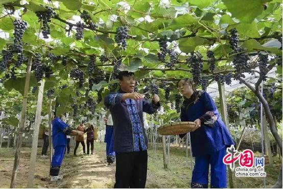 近年來,大坡村以葡萄、獼猴桃等種植基地為基礎,積極發(fā)展農業(yè)觀光旅游,建設了葡萄觀光科普長廊、農耕文化展示廳、葡萄加工基地、湘西特色產品帶貨點等觀光打卡點,形成了“產業(yè)基地+休閑觀光采摘”的農旅產業(yè)融合模式。每到周末和節(jié)假日,小村莊便熱鬧起來,來果園采摘、吃農家飯、品葡萄酒、購湘西臘味的游客絡繹不絕。研學產業(yè)的發(fā)展,進一步促進了大坡村產業(yè)升級和經濟全面協(xié)調發(fā)展。