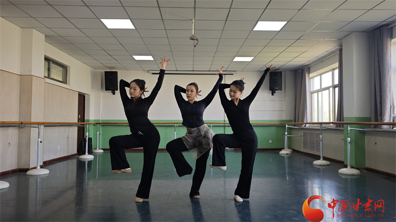 “敦煌舞最難的是對(duì)重心的把握,三道彎的舞姿造型對(duì)平衡要求很高。”蘇瑞璇介紹敦煌舞練習(xí)的要理,而除此之外,她一直都給同學(xué)們灌輸與壁畫舞者對(duì)話的理念,只有心中有敦煌、有壁畫,才能跳出敦煌舞的神韻。